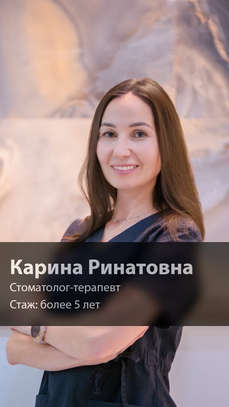 Прекрасная клиника, в которой работают замечательные стоматологи. Клиентоориентированность, приятный интерьер, вежливый персонал, квалифицированные врачи и хорошее качество лечения. Обращалась в клинику по причине лечения кариеса . Огромное спасибо Карине Ринатовне, прекрасный и внимательный врач , все осматривает , оценивает и приступает к работе, очень аккуратно работает, безболезненно проходит ее приемы .